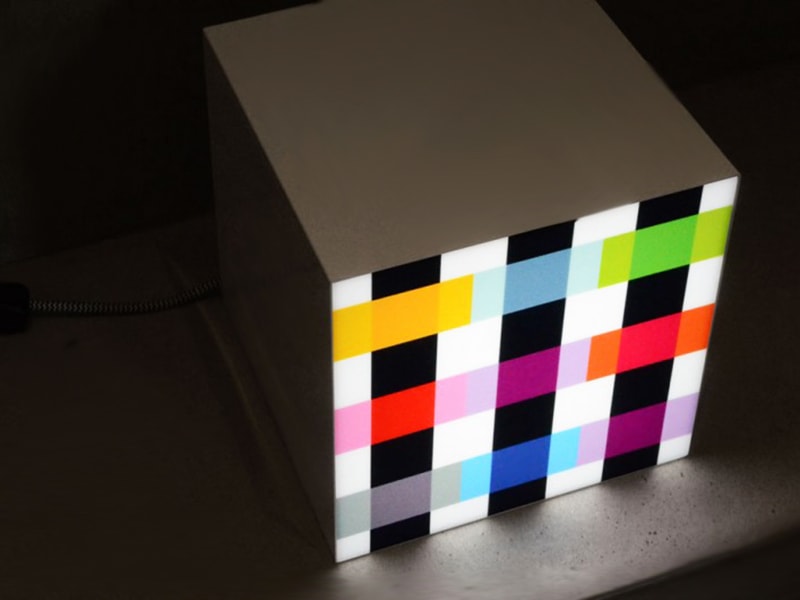 Lampa Colour Caro je představitelem nové unikátní série designového osvětlení. Krychle obsahuje 42 LED diod, které prosvětlují barevnou přední část dokonce i za denního světla. Tuto designovu lampu můžete nejen postavit na stůl, komodu či polici, ale také zavěsit na zeď. Designovou třešničkou na dortu je textilní kabel s vypínačem.