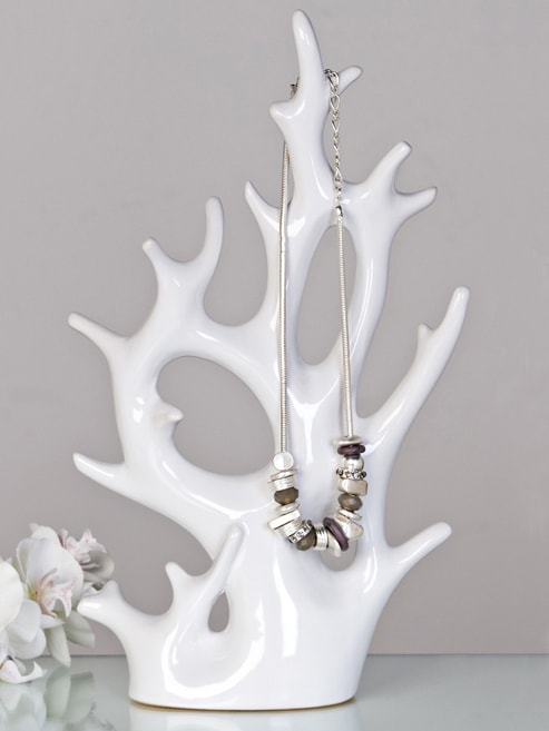 Ruce a stromečky už jsme tu měli, co takhle překvapit svoji dráhou polovičku stojanem na šperky v podobě korálu? Každou ženu potěší tento originální doplněk, který jí navíc pomůže v boji se smotanými náhrdelníky a řetízky. Zpříjemněte si interiér ložnice praktickým nočním stolkem, na kterém obzvlášť vynikne keramický stojan na šperky.