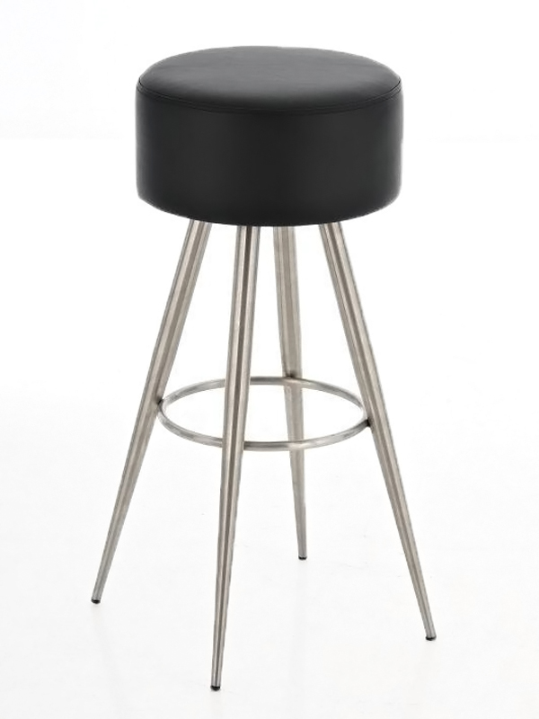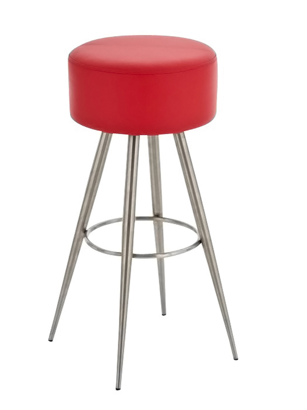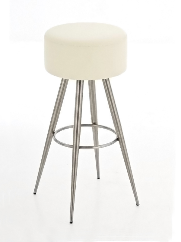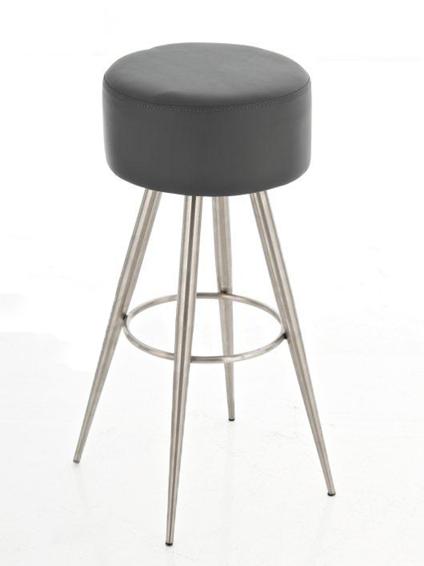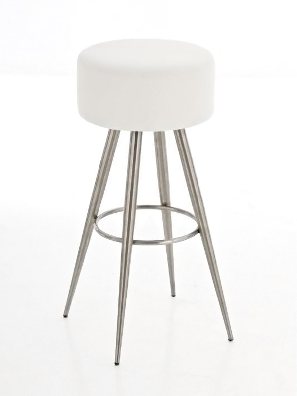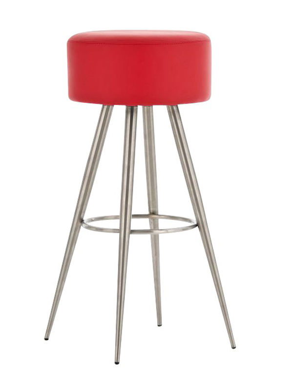 Barová židle Fiona bez opěradla vašemu interiéru nabídne futuristický design a také komfortní stabilní sezení. Kulatý sedák židle je potažen syntetickou kůží a tvoří harmonickou kombinaci s jednoduchou nerezovou podnoží, která se skládá ze čtyř směrem dolů se rozbíhajících nohou. Kruhová opěrka na nohy je současně obručí, který spojuje nohy do jednoho stabilního celku. Barovou židli Fiona díky jejím kompaktním rozměrům oceníte v menších prostorech, ať už se jedná o kavárnu či domácí kuchyň či jídelnu.