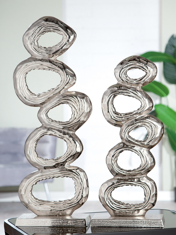 Dekorace Rings na podstavci, tvořená z nepravidelných prstenců vytvoří skvělou dekoraci s uměleckým duchem, ve vašem domově.
