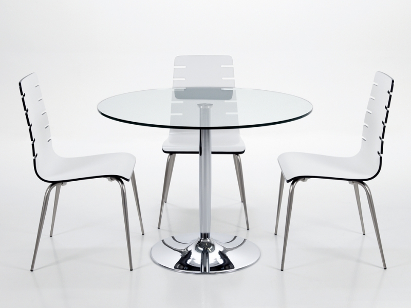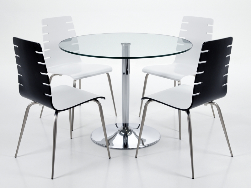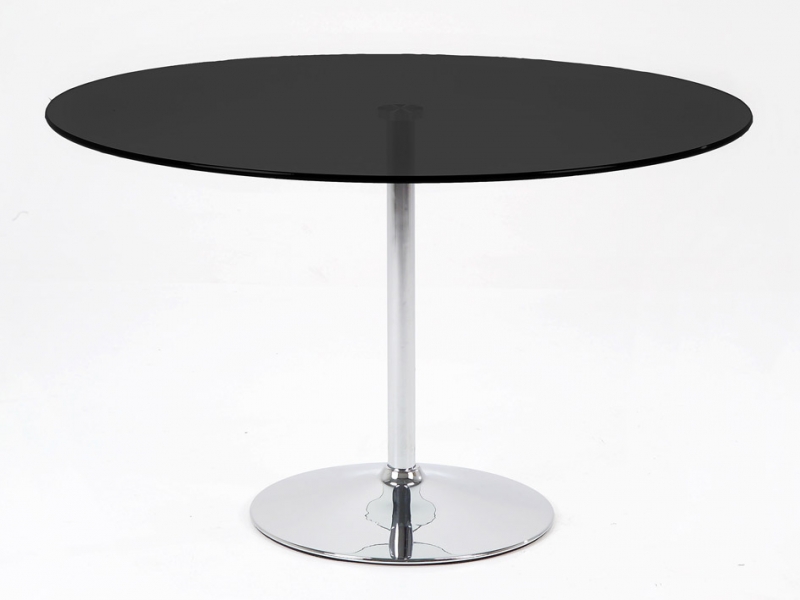 Kulatý stůl na centrální podnoži se skleněnou stolovou deskou využijete zejména jako stůl jídelní. Černé sklo je elegantní a současně neutrální, proto je stůl v takovém provedení prakticky univerzální a nemusíte si příliš lámat hlavu s barevným sladěním s ostatním nábytkem v jídelně.