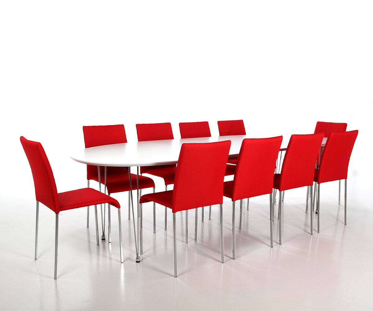 Jídelní stůl Ballet, 270 cm je moderní rozkládací jídelní stůl s prvky retro stylu. Díky kovovým nohám, které jakoby byly tvořeny silnými dráty, působí elegantním a vzdušným dojmem.