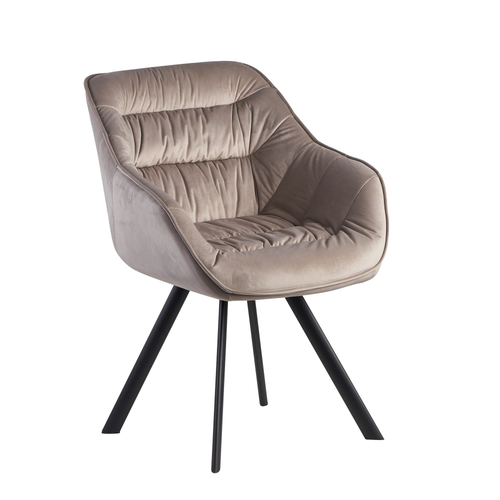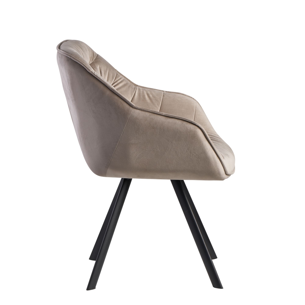 Vysoce moderní design jídelní židle Gepo vás zaujme na první pohled! Sametový potah sedáku je doplněn o elegantní prošívání, což židli zajišťuje lehce extravagantní a přesto elegantní vzhled. Podnož z černě lakovaného kovu v jednoduchém stylu perfektně doplňuje. Jídelní židle Gepo vás překvapí vysokým pohodlím sezení, které si můžete užívat nejen u jídelního stolu.
