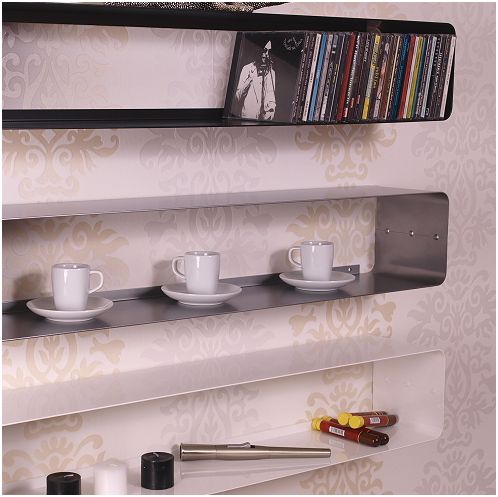 Nástěnná police z ohýbaného lakovaného kovu v nadčasovém retro tvaru zaobleného obdélníku ve velikosti XXL. Police je určená k zavěšení na zeď a je dimenzována přesně na velikost CD. Do této police se vám vejde až 100 ks normálních CD. Oživte svůj moderně zařízení interiér nadčasovou retro policí. Dáváte-li přednost spíše uzavřeným úložným prostorům v obývacím pokoji či pracovně, můžete si vybrat z nabídky komod nebo skříní a skříněk.