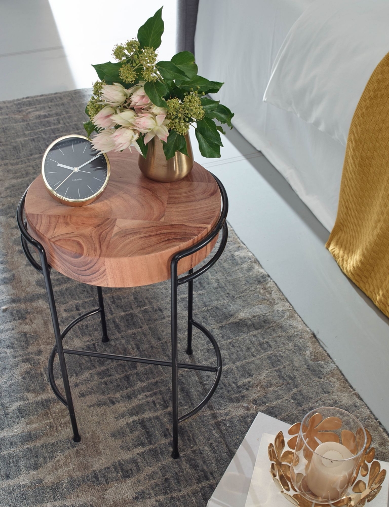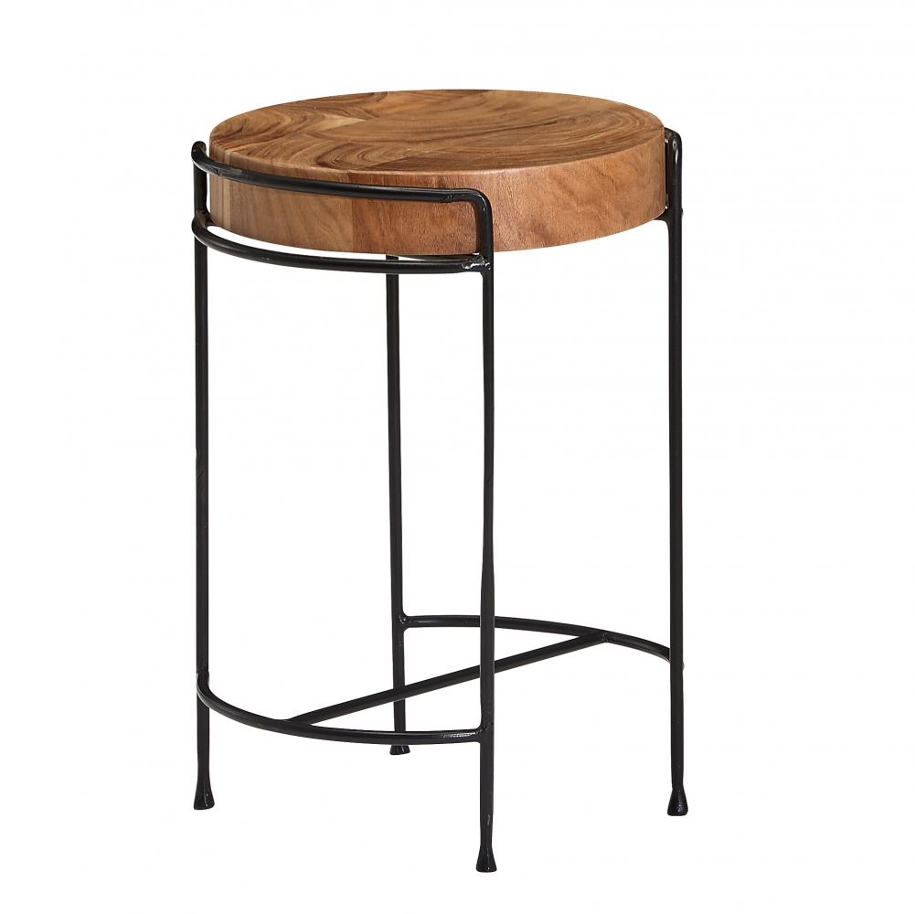 Designový odkládací stolek Antu doplní moderní interiér, který ponese nádech útulného prostředí, ale zapadne skvěle i do interiéru laděného do retro stylu. Jednoduchý, kulatý tvar desky z masivního sheeshemového dřeva doplňuje konstrukce z černě lakovaného kovu a vytváří tak zajímavý kontrast materiálu. Nemůže se vám stát, že se hrany stolu obouchají či jinak poškodí, protože kolem desky je kovový rám a díky tomu je stůl velmi odolný.