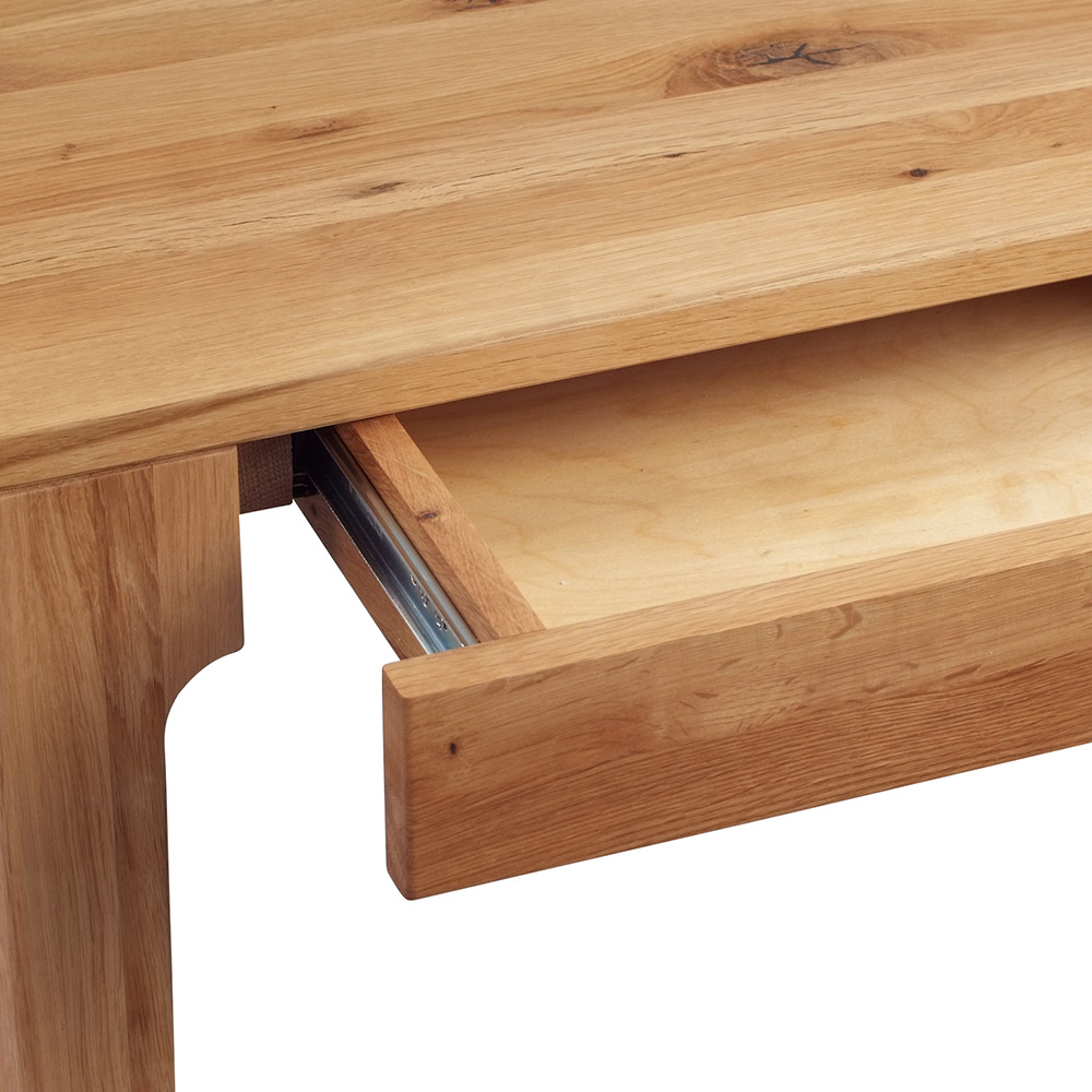 U stolů a stolků z kolekce Theodor jsou všechny hrany a rohy zaoblené a jemně tvarované. Nohy se směrem dolů lehce zužují a konstrukce podnože tvoří pod stolovou deskou oblouky.