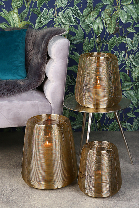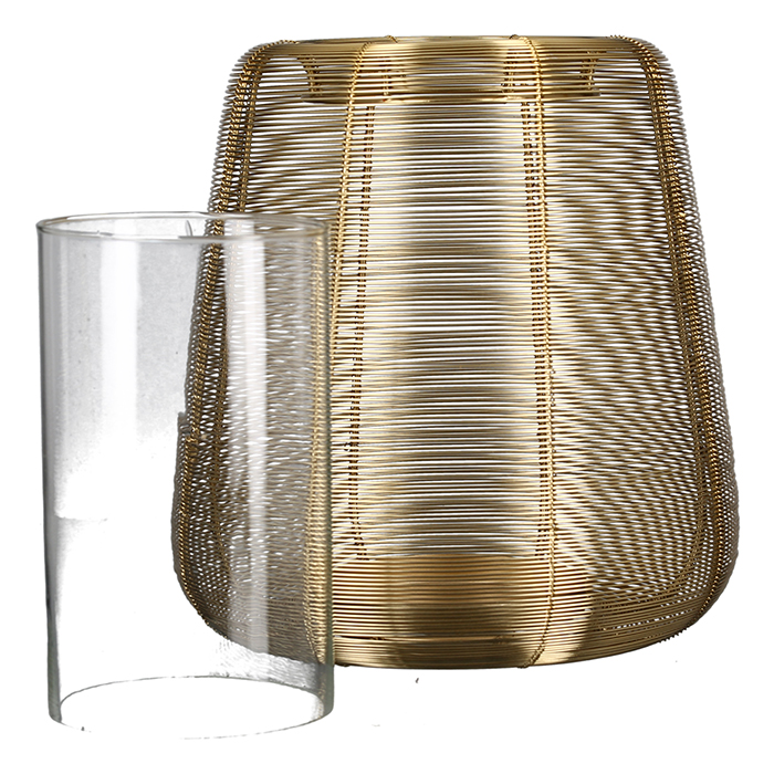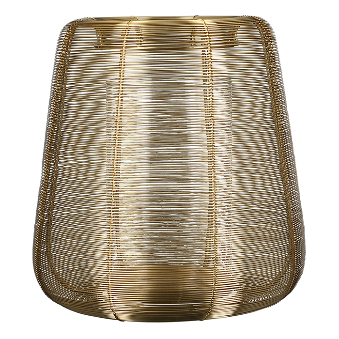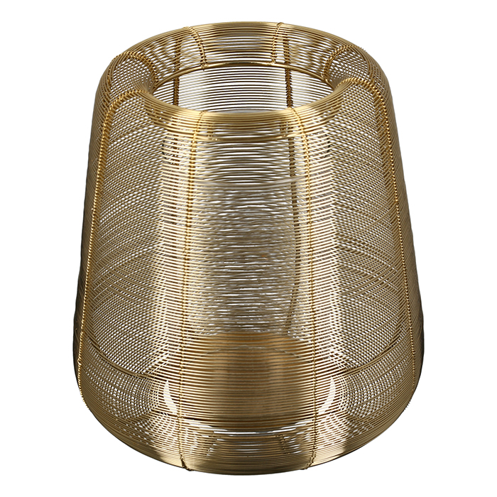 Svícen Belo je luxusní interiérový doplněk, který dodá šmrnc každé domácnosti. Designový mřížkovaný tvar ve zlatém provedení je doplněn o skleněnou nádobku vhodnou především pro válcové typy svíček.