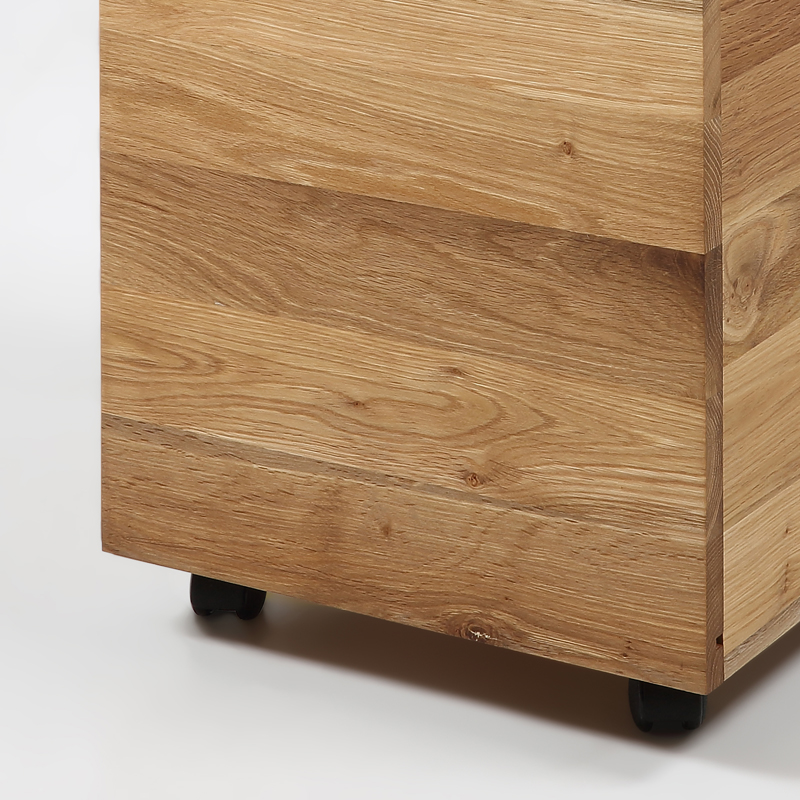 Máte v bytě málo místa? Řešením pro vás je úložný box na kolečkách z dubového dřeva. Díky univerzálnímu vzhledu se stane zajímavou a hlavně funkční dekorací ve vašem obývacím pokoji, stejně jako v pracovně nebo v ložnici. Úložný box můžete snadno přesouvat po celém bytě, ať ho zrovna máte tam, kde ho nejvíc potřebujete. Šikovné rozměry tohoto boxu vám poskytnou dostatek prostoru pro uložení papírů, knih, časopisů, pracovních podkladů nebo například i dětských hraček či bytových dekorací.